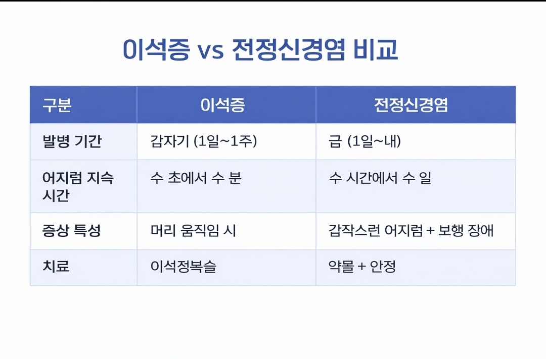 🔥 이석증 vs 전정기관신경염 차이 (중요!)