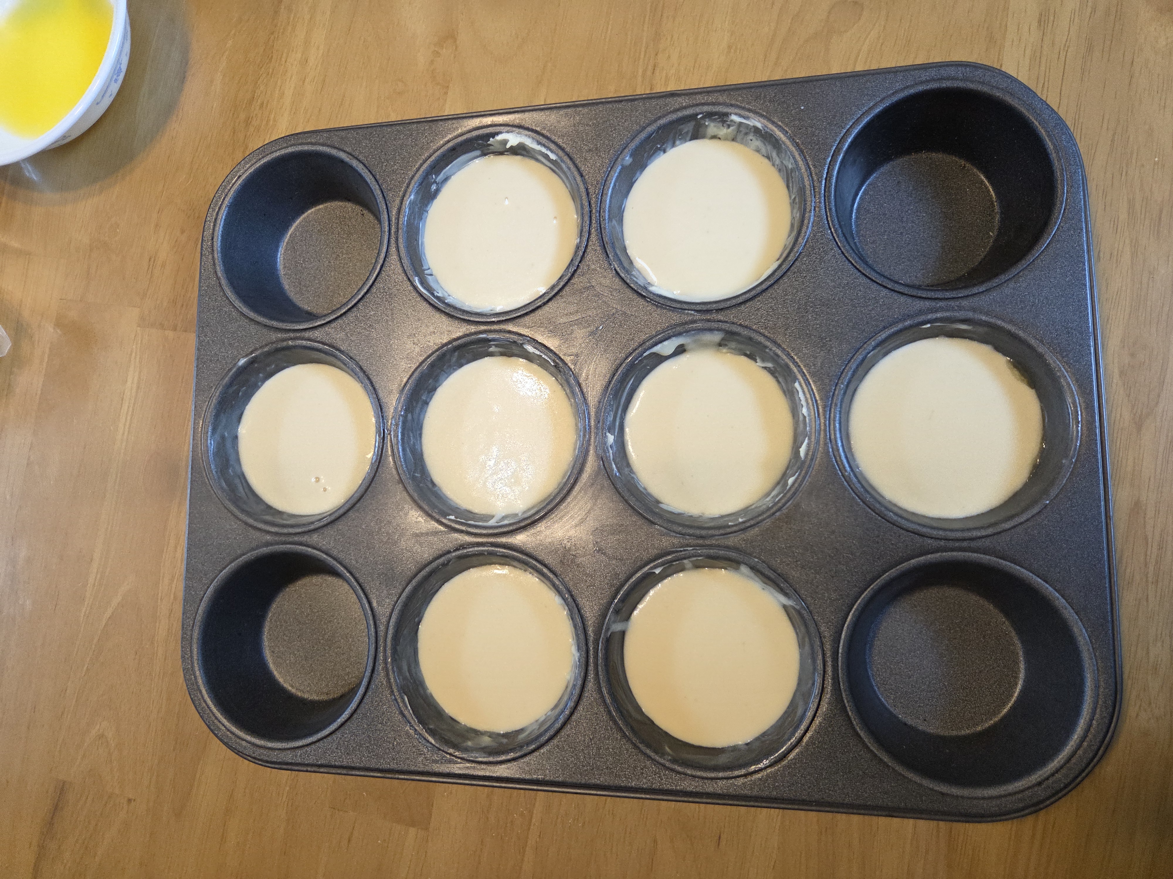 6. 머핀틀에 버터를 넉넉히 바른 뒤 반죽을 약 80% 정도만 채워 넣습니다.