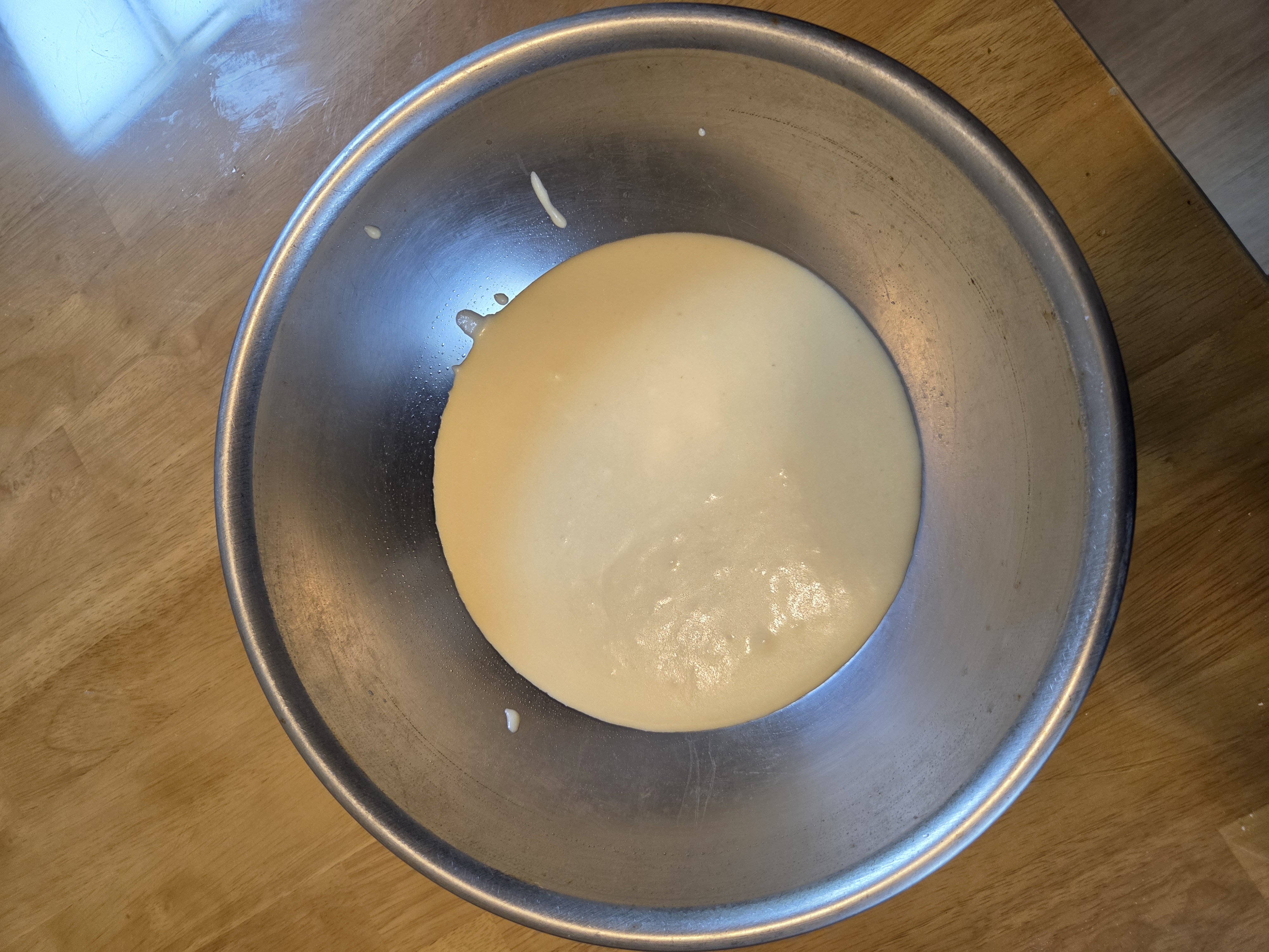 여기에 우유, 녹인 버터, 바닐라 오일을 넣고 잘 섞어줍니다.